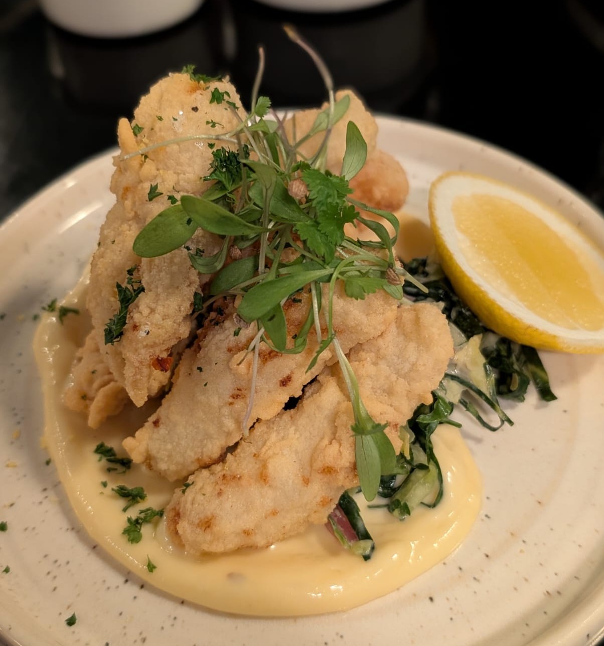 For our starters Ricard and The Editor chose cod cheeks cooked in strips in a tempura-type batter. Oh yes, these were good. Light and crispy, not over-cooked, and full of flavour. Thank you, Ricard, for giving me one. I simply adored it.
