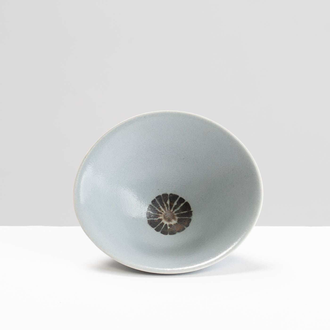 The pictures are below, but a little piece about this little piece. It is a small porcelain bowl (10cm x 9cm x 5cm) with a devastatingly beautiful grey glaze, and a metallic detail in the centre. It has been hand thrown by Phil Lyddon. About him we are told: