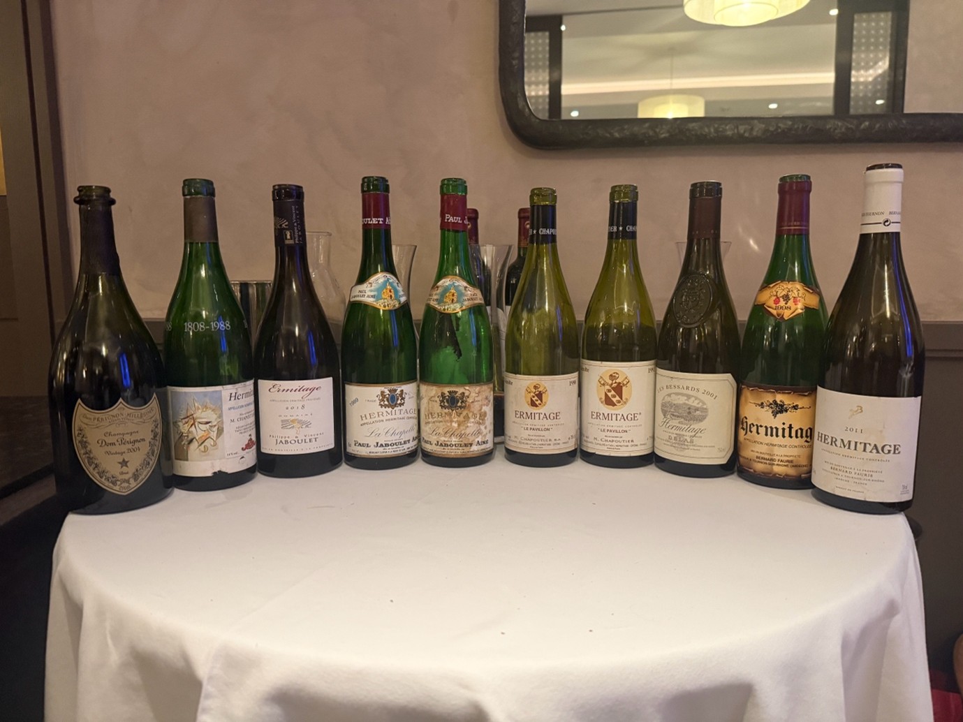 The theme of the dinner was Hermitage. It is one of the three great appellations of the Northern Rhône, along with Cornas and Côte-Rôtie, and probably the one I know least well. The core of the dinner was built around a pair of old vintages of La Chapelle from Paul Jaboulet Aîné.